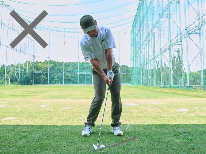このタイプのミスでは、右プッシュやトップ、そして低い弾道がよく見られます。手元が先行してフェースが開いたまま当たることでスライスが発生。また、体が起き上がりやすくなることでトップショットが出やすくなります。